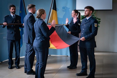 Mit dem Schwur, das Grundgesetz und alle in der Bundesrepublik Deutschland geltenden Gesetze zu wahren und die Amtspflichten gewissenhaft zu erfüllen, wurden am Mittwochmittag (03.09.2025) insgesamt 41 Polizeivollzugsbeamtinnen und -beamte in der Bundespolizeidirektion Stuttgart vereidigt.
