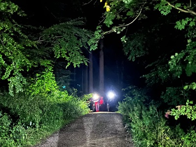 Ein 35-jähriger Mann war bei der nächtlichen Abfahrt mit seinem E-Mountainbike im Wald gestürzt und zog sich eine Kopfverletzung zu.