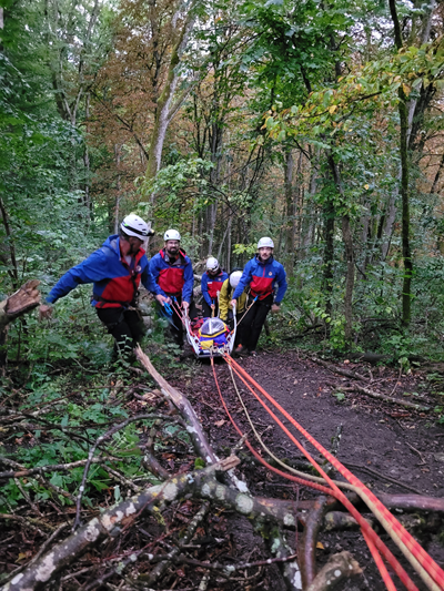 Angenommen wurde ein Einsatzszenario mit zwei verletzten Personen, die möglichst schnell und sicher aus dem unwegsamen Gelände gerettet werden mussten. Das aufziehende Gewitter verdeutlichte dabei die Bedeutung eines zügigen und gut abgestimmten Vorgehens. Gleichzeitig bot die Übung auch den Anwärterinnen und Anwärtern Gelegenheit, wertvolle Praxiserfahrung zu sammeln.