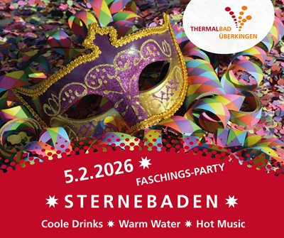 Fasching feiern, wo andere entspannen – das ist beim Sternebaden im Thermalbad Überkingen möglich. Am 05. Februar 2026 von 18 – 23 Uhr verwandelt sich das Thermalbad in eine außergewöhnliche Faschingslocation und lädt zu einer stimmungsvollen Party der besonderen Art ein.