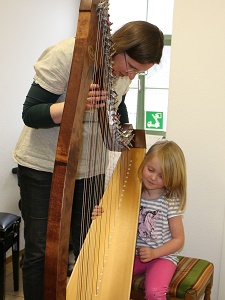 Foto: Interessiert an Zupfinstrumenten? Nicht nur akustische Gitarre und E-Gitarre kann man an der Musikschule lernen – auch Harfe!