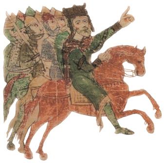 Foto: Barbarossa auf dem Kreuzzug. Ausschnitt einer Buchmalerei.