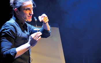 Ein magischer Abend – sieben Unmöglichkeiten, sieben Geschichten, sieben wundervolle Momente, zwischen Menschlichem und dem, was drunter liegt und drüber scheint. Christoph Demian zaubert im modernen Gewand, schlüpft in die verschiedensten Rollen, täuscht als sympathisches Schlitzohr, irritiert als gerissener Falschspieler, amüsiert als zaubernder Nerd. Eine Wandlungsfähigkeit, die dem jungen Magier quasi im Blut liegt. Der Sohn einer Theater-Familie wächst Backstage auf, wechselt allerdings ganz früh auf die andere Seite des Vorhangs. Trotz aller verblüffender Illusionen wird es sehr persönlich: Über sich selbst zu lachen gehört ebenso dazu wie eine gehörige Portion Sozialkritik. »Fairzaubern« nennt er diesen Part seiner Performance. Mit seiner Kunst will er sich und sein Publikum ein Stück re-illusionieren. Deshalb ist »Sieben« auch keine One-Man-Show, sondern bindet die Zuschauer in die Tricks ein.