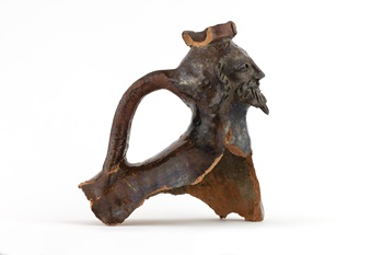 2019 machte die Kreisarchäologie nach einem Hausabriss in der Oberen Marktstraße Göppingens einen der spektakulärsten Funde der letzten Jahre: Die Bruchstücke eines dunkelbraun glasierten Keramikaquamaniles, insbesondere einen detailliert gearbeiteten und gekrönten Kopf.