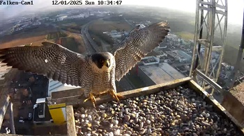 Auch in Heidelberg nisten die Wanderfalken spektakulär im Turm der Heiliggeistkirche. Drei Webcams übertragen das Familienleben von Ruprecht und Liselotte, die bereits 2024 ein Paar waren. Bisher war Geduld gefragt. Heute Nacht (6.3.) lag dann endlich auch in Heidelberg das erste Ei in der Nistmulde. Wie viele Küken werden es dieses Jahr? Wenn alle Eier beisammen sind, dauert es rund einen Monat, bis die Küken schlüpfen. Dann haben die Vogeleltern viel zu tun, um den Nachwuchs zu wärmen, zu füttern und zu beschützen. Gegen Anfang Juni fliegen die Jungen meist aus, werden aber noch für eine gewisse Zeit außerhalb des Nistplatzes versorgt. Diese Bettelflugperiode dauert ungefähr sechs Wochen. Danach müssen die Jungvögel das Revier der Eltern verlassen.