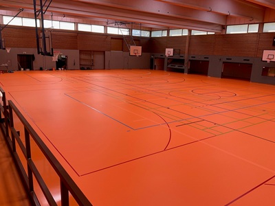 Statt punktuell den Boden rund um die Bodenhülsen zu erneuern, wurde gleich der gesamte Hallenbelag erneuert.