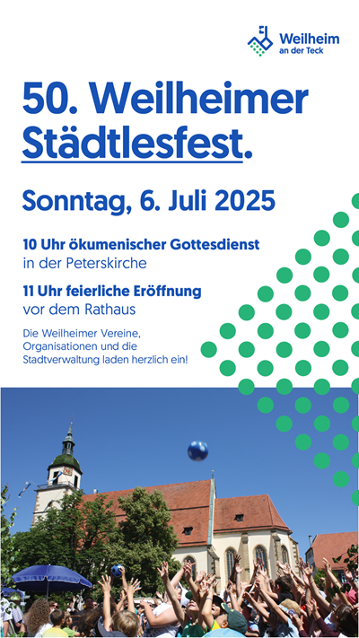 Weitere Informationen und die Übersicht über das vollständige Spieleangebot, Unterhaltungsprogramm und das kulinarische Angebot unter: www.weilheim-teck.de/staedtlesfest
