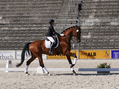 In der am Nachmittag ausgetragenen Dressurprüfung Kl. S* (Trense) für 7- bis 9-jährige Pferde – gleichzeitig Qualifikation für Prüfung 6 – siegte Jasmin Schaudt vom RFV Herbertingen mit dem gewaltigen siebenjährigen Hannoveraner Ventoux. Das Paar zeigte sich locker, kraftvoll und sicher in der Anlehnung und erhielt von den Richtern eine Gesamtnote von 70,769 %. Den zweiten Platz sicherte sich Sophia Scheld (TG LLZ Ansbach e.V.) mit ihrer selbst gezogenen und gerittenen Stute Secret Rose S (69,915 %). Rang drei belegte Stephanie Witzemann vom PS-Team Winterlingen e.V. mit Viva Fürstin, einer Vitalis-Tochter, die ebenfalls mit Ausdruck und Präzision punkten konnte.
