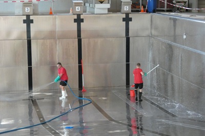 Foto (Bildquelle: Stadt Eislingen): Die Sommerpause wird genutzt, um die Edelstahlbecken zu reinigen.