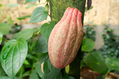 Foto (© Wilhelma Stuttgart/Birger Meierjohann): Die Früchte des Kakaobaumes wachsen direkt am Stamm.