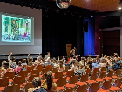 25 Kinder entschieden sich für die Gestaltung eines Dioramas, andere erstellten als Gruppe oder alleine einen Trickfilm. Zur großen Abschlussfeier am 23. September eingeladen waren alle Bücherwürmer, die mindestens ein Buch gelesen hatten. Manche Kinder kamen in Begleitung ihrer Familien, alle hatten aber vor allem gute Laune im Gepäck. Gemeinsam mit Stefanie Kuballa, Leiterin der Stadtbücherei, und Anastasia Scheklein, Fachangestellte für Medien- und Informationsdienste, blickten sie auf einen gelungenen Lesesommer zurück. Oberbürgermeister Klaus Heininger eröffnete die Veranstaltung und lobte das Engagement der Kinder. Im Anschluss sorgte die Illustratorin Hanna Wenzel für Begeisterung. Gemeinsam mit den Kindern entwickelte sie eine völlig neue Comicfigur. Die Kinder konnten auf der Leinwand live mitverfolgen, wie die Figur zum Leben erwachte. „Die Kinder haben ganz viel Fantasie und Enthusiasmus in die Gestaltung der Figur gesteckt, das war beeindruckend“, berichtet Stefanie Kuballa, Leiterin der Stadtbücherei. Nach einer kurzen Pause folgte der Höhepunkt der Veranstaltung: die Preisverleihung samt Urkundenübergabe. Zu gewinnen gab es unter anderem Bücher, gespendet von der Buchhandlung Dölker, Buchgutscheine der Buchhandlung Blatt und Buch, Modellautos gespendet von Zeller + Gmelin, sowie den Hauptpreis – vier Eintrittskarten für den Erlebnispark Tripsdrill, gespendet vom Park selbst. Auch die Volksbank unterstützte die Aktion. Mit der Abschlussveranstaltung ging der Sommerleseclub 2025 zu Ende. Die Stadtbücherei bedankte sich bei allen Teilnehmenden, Unterstützenden und Sponsoren – und freut sich schon jetzt auf HEISS AUF LESEN 2026.
