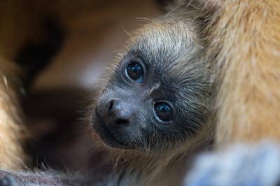 Im Amazonienhaus der Wilhelma hat sich bereits Mitte September 2025 Nachwuchs bei den Schwarzen Brüllaffen eingestellt. Eng an den Körper seiner Mutter geschmiegt, lässt sich das männliche Jungtier umhertragen. Genau wie seine Mutter hat es ein blondes Fell: Die charakteristische schwarze Färbung tragen nämlich nur die erwachsenen Männchen, die zudem deutlich größer sind als ihre Artgenossinnen. Ein weiteres Merkmal der Brüllaffen ist ihr muskulöser Greifschwanz, welcher ihnen dabei hilft, sich sicher in den Bäumen zu bewegen. Brüllaffen sind, wie es ihr Name andeutet, in der Lage, sich auf deutliche Art und Weise Gehör zu verschaffen: Mit lauten Brüllkonzerten markieren sie ihre Reviere – das gilt in der Natur genau wie in der Wilhelma.
