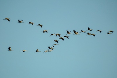 Kraniche folgen zwei Hauptrouten und einer Nebenstrecke