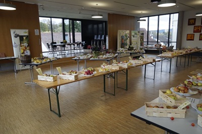 Ein besonderes Highlight in der Feierreihe anlässlich der 750-jährigen Jubiläen der Gemeinden Albershausen, Schlierbach samt Ortsteilen von Ebersbach an der Fils, Roßwälden und Sulpach war die Sortenausstellung mit Sortenbestimmung in der Mensa der Grundschule Albershausen. Pünktlich um 14 Uhr eröffneten Bürgermeister Herr Jochen Bidlingmaier und Frau Tanja Schweizer (Vorsitzende des Kreisverbandes der Obst- und Gartenbauvereine Göppingen e. V.) die Veranstaltung, die in Zusammenarbeit mit den sechs Obst- und Gartenbauvereinen des Unteren Filstals organisiert wurde.