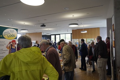 Besonderes Interesse galt der Sortenbestimmung eigener mitgebrachter Früchte: Mit 95 vergebenen Wartemarken wurden die Erwartungen übertroffen. Die Bestimmung nahmen erfahrene Experten vor, darunter der Landespomologe, Hans-Thomas Bosch, Mitarbeiter im Kompetenzzentrum Obstbau Bodensee in der Abteilung Sortenerhaltung/Streuobst und Herr Thilo Tschersich Kreisfachberater im Landkreis Reutlingen mit Schwerpunkt Sortenerhaltung, Herr Kuno von Banks und Herr Ralf Lachenmaier als bekannte Hobby-Pomologen sowie Herr Jochen Berger von der Naturschutzbehörde, Fachbereich Streuobstwiesen der Stadt Stuttgart. Ursprünglich bis 17 Uhr geplant, endete die Beratung erst gegen 18:30 Uhr – ein Ausdruck des großen Engagements und Interesses der Besucher.