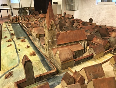 Im Zentrum der Ausstellung stehen Modelle von markanten Geislinger Stadtteilen und Gebäuden. Wahrzeichen wie der Ödenturm und der Alte Zoll sind ebenso zu sehen wie Miniaturen von Bauwerken, die einzelne Stadtbezirke prägen oder geprägt haben. Schließlich ermöglicht der Modellbau auch Zeitreisen, etwa in die 1960er Jahre, als historische Bausubstanz durch Abriss für immer verloren ging und nur noch Modelle an manch prägendes Gebäude erinnern. Bis ins Mittelalter geht es dabei mit der Darstellung des Lindenhofs oder der Burg Helfenstein zurück. Umgekehrt zeigt manche Miniatur Bauprojekte die nie in der Realität umgesetzt wurden, das Stadtbild dann jedoch stark verändert, wenn nicht gar zerstört hätten.