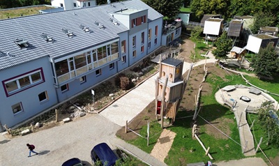 Foto (DJH Landesverband BW): Der große Außenbereich der Jugendherberge hat sich in den vergangenen Monaten zu einem vielseitigen öffentlichen Erlebnis-, Spiel- und Naturerfahrungsraum entwickelt.