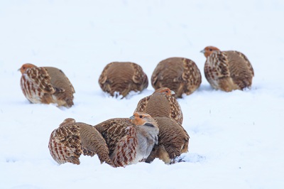 Das Jahr des Rebhuhns startet mitten im frostigen Winter. Noch leben die Hühnervögel in „Ketten“ auf kahlen Feldern, doch schon im Februar lösen sich diese schützenden Familienverbände auf, wenn der Vogel des Jahres 2026 auf Brautschau geht.