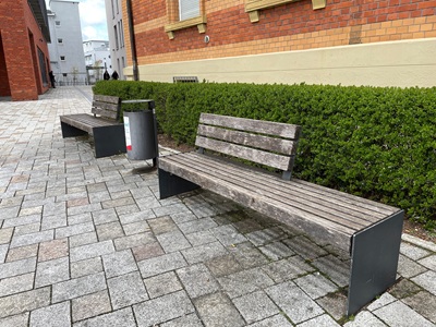 Foto (Bildquelle: Stadt Eislingen): Ruhige Plätze, wie zum Beispiel diese Sitzbänke auf dem Schlossplatz, können bis Ende April in einer Karte eingetragen werden.