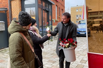 „Mit diesem Valentinsgruß möchten wir auf das wichtige Thema des fairen Handels aufmerksam machen, denn unsere Entscheidungen beim Einkauf machen einen globalen Unterschied“, betonte Oberbürgermeister Klaus Heininger die Bedeutung von Faitrade-Produkten und deren Einfluss auf gerechte Löhne und Arbeitsbedingungen bei den Erzeugern. Nach knapp einer Stunde waren die rund 200 Rosen verteilt und zauberten bei den Besucherinnen des Wochenmarktes ein überraschtes Lächeln in das Gesicht. Die Verteilaktion war Teil einer Kampagne von Fairtrade Deutschland für fairen Konsum. Ziel ist es, das Bewusstsein der Verbraucherinnen und Verbraucher zu schärfen und dazu zu ermutigen, bewusste Kaufentscheidungen zu treffen.