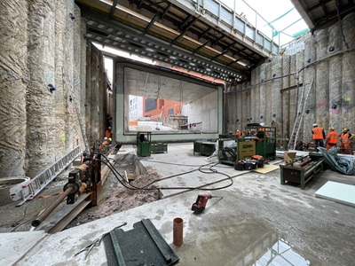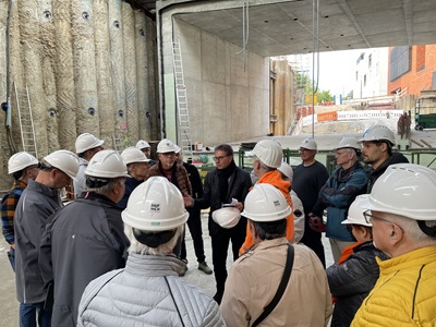 Baugrubensicherung ausgeführt? Wie werden die verschiedenen Betonblöcke wasserdicht miteinander verbunden? Wurde auch an die Leerrohre innerhalb des Gehwegs gedacht und wie schafft man es, einen 1200 Tonnen schweren Betonklotz 19 Meter waagerecht zu verschieben? Diese und noch viele weitere Fragen konnten beantwortet werden und zeigten eindrucksvoll die Komplexität des Bauwerks, das hier direkt in der Eislinger Mitte entsteht. Tiefbauamtsleiter Martin Fischer und Tobias Clement des Ingenieurbüros BNP lobten die Deutsche Bahn und die Göppinger Baufirma Leonhard Weiss, denn die Baustelle liegt voll im Zeitplan und wird wohl auch termingerecht Mitte 2026 fertig.