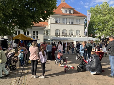 Mit Aperol Sprizz und ausgesuchten Weinen war der Getränkestand bald umlagert und man genoss mit einem Gläschen in der Hand den, wenn auch noch kühlen, so doch sonnigen Spätnachmittag in den Abend hinein. Mit Würsten und Käsebrötchen, sowie Getränken aller Art, war für Jung und Alt was geboten. Popcorn und Kreidemalen erwies sich als Renner für die Kinder. Überhaupt schön, daß viele junge Familien da waren. Gegen später schauten auch MdL Sascha Binder und Regionalrat Dr. Klaus Spachmann vorbei.