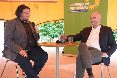 Rund 90 Gäste kamen zum Sommerfest der Grünen in den Biergarten der Rätschenmühle in Geislingen. Dr. Mariska Ott, Kreisvorsitzende und Landtagskandidatin im Wahlkreis Göppingen, begrüßte neben dem neu gewählten Geislinger Oberbürgermeister Ignacio Ceffalia den Bundestagsabgeordneten Dr. Sebastian Schäfer sowie den Baden-württembergischen Finanzminister Dr. Danyal Bayaz.