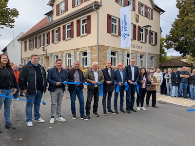 Jahrzehntelang stand die Optimierung der Ortsdurchfahrt auf der Wunschliste der Hepsisauer Bürgerinnen und Bürger und des sie vertretenden Ortschaftsrats. Ende 2021 machte das Gremium mit Zustimmung durch finalen Beschluss des Weilheimer Gemeinderats einen Knopf an das Konzept. Nach Monaten der Ausgestaltung und baulichen wie logistischen Planungen wurden die Bauarbeiten des rund sechs Millionen Euro schweren Projekts nun abgeschlossen. Gebührend gefeiert wurde dies mit einem Hock. Zur offiziellen Einweihung kamen auf Einladung von Bürgermeister Johannes Züfle auch Ministerialdirektor Berthold Frieß aus dem Ministerium für Verkehr Baden-Württemberg, CDU-Abgeordnete im Landtag von Baden-Württemberg Dr. Natalie Pfau-Weller und Grünen-Abgeordneter Andreas Schwarz.