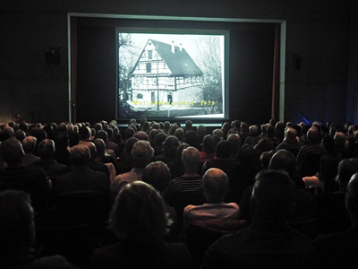 „Unser Jubiläumsjahr war zur Hälfte rum und dann bekamen wir im Rathaus von Ihnen das Angebot mit dem Film“, erinnert sich Uhingens Bürgermeister Matthias Wittlinger. Intern habe man sich dann Gedanken gemacht, wie der Film in die Veranstaltungsreihe anlässlich „750 Jahre Uhingen“ eingebunden werden kann. Schnell war klar, ihn spontan als Kino-Erlebnis im Uditorium einzubinden. „14 Tage nachdem ich mich im Rathaus gemeldet hatte, bekam ich einen Anruf“, berichtet Günther Pfeiffer. Man habe gefragt, ob der Film der Öffentlichkeit gezeigt werden könne. „Mich hat es schier von Hocker gehauen“, sagte er und das Publikum lachte angesichts dieser Anekdote. Im Jahr 2007 fertigte er sein Werk anlässlich eines Treffens mit Klassenkameraden, erstellte im Jahr 2013 eine Kurzversion und danach folgte die nun gezeigte Version.