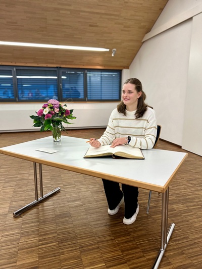Die Stadt Donzdorf würdigt die herausragenden sportlichen Erfolge von Anna-Maria Weber: Die 18-jährige Athletin trug sich im Rahmen einer Feierstunde im Bürgerhaus in Winzingen in das Goldene Buch der Stadt Donzdorf ein. Ortsvorsteher Markus Dannenmann und stellvertretende Bürgermeisterin Ulle Seimetz überbrachten die Glückwünsche der Stadt und sprachen ihre Anerkennung für die außergewöhnlichen Leistungen der jungen Sportlerin aus.