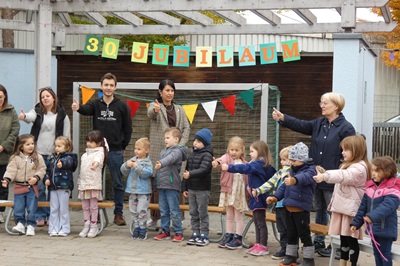 Die Kinder und das Kita-Team steckten die Gäste mit ihrer Freude über das Jubiläum an und begeisterten mit einem selbstgedichteten Lied, das eigens zum 30-jährigen Jubiläum entstanden ist.