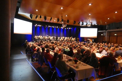 An zwei Nachmittagen feierten die Eislinger Seniorinnen und Senioren in der festlich geschmückte Stadthalle. Für beste Unterhaltung für die über 75-jährigen sorgten ein abwechslungsreiches Bühnenprogramm und Voralbkomödiant Thomas Schwarz, der als Moderator mit Witz durch das Programm führte.