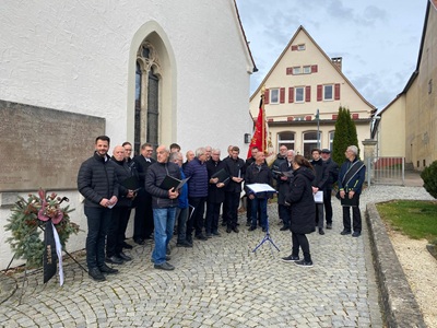 Der Männerchor des Liederkranz Weiler o. H. hat am Volkstrauertag auf dem Friedhof in Weiler in würdiger Form die öffentliche Feier am Volkstrauertag zum Gedenken der Opfer von Krieg und Gewalt umrahmt. Am Kriegerdenkmal trug der Chor unter der Leitung von Julia Sontheimer drei tief bewegende Lieder vor, die den zahlreichen Besuchern Trost und Zuversicht spendeten.