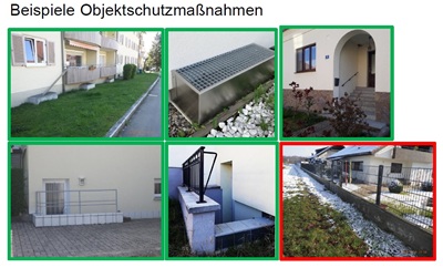 - Anpassung der Bauweise (Erhöhung EFH, Lichtschächte, Kellerfenster, Kellerabgänge, Rückstausicherungen)