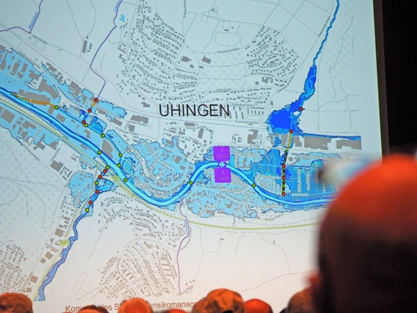 Unwetterartige Gewitter können enorme Wassermassen mit sich bringen, die sich dann ihren Weg bahnen – auch in Häuser, Keller und Tiefgaragen. Wie dieses Risiko reduziert werden kann, zeigt das Starkregenrisiko-Management der Stadt Uhingen auf, das kürzlich im Uditorium vorgestellt wurde.
