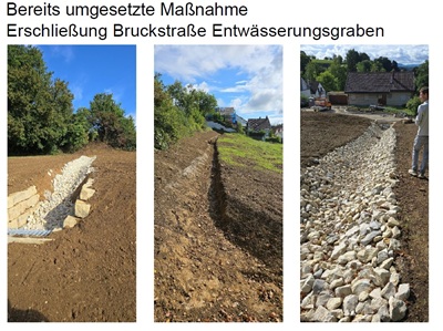 Manche Maßnahmen konnten seitens der Stadt schon umgesetzt werden: Bei der Erschließung für das Wohngebiet Bruckstraße in Holzhausen wurde ein Entwässerungsgraben mit Einlaufbauwerk errichtet.