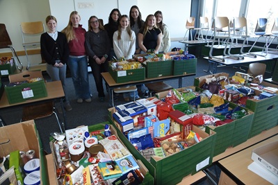 16 Kisten. Vollgepackt mit Lebensmitteln. Die Kisten stehen in einem Klassenzimmer im ersten Stock des Raichberg-Schulzentrums. Eine Woche lang konnten alle Schüler der beiden Schulen des Schulzentrums, also des Raichberg-Gymnasiums und der Raichberg-Realschule, in den Pausen ihre Lebensmittelspenden abgeben. Gespendet wurde für den DRK-Tafelladen, der in der Karlstraße in der Ebersbacher Innenstadt dreimal die Woche Lebensmittel an Bedürftige verkauft. Gespendet haben die Schüler auch in den vergangenen Jahren schon, aber jedes Mal wieder gilt es, die Sammelaktion für den guten Zweck zu organisieren. Jessica Eberspächer aus der 10. Klasse des Raichberg-Gymnasiums hat das, mit tatkräftiger Hilfe von einigen Neunt-Klässlerinnen des Gymnasiums und der Realschule, in die Hand genommen. Spendenaufrufe schreiben und verschicken, Schichtpläne für die ganze Sammelwoche erstellen – also wer in welcher Pause die Spenden im Klassenzimmer im ersten Stock annimmt. „Haben die alles selbst gemacht“, sagt Religionslehrerin Beate Holzweißig, die die Spendenaktion begleitet hat. Es hat gut funktioniert. Die „Werbung“ auf dem Instagram-Kanal der Schule ist bei den Schülern angekommen, per Elternbrief im Schulmanager haben auch die Eltern der Schüler „Wind“ von der Aktion bekommen. Und die Taschen ihrer Kinder vollgepackt. Kartonweise Nudeln, kleine, große, breite, lange. Und Lebkuchen in Hülle und Fülle, Marmelade, Schokolade, gläserweise Nuss-Nugat-Creme und Kaffeefilter für den Adventskaffee. Holländische Sirup-Waffeln, Konserven-Dosen, Shampoo, es war alles dabei.
