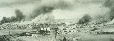 Foto (Gerhard Stahl): Historische Aufnahmen vom brennenden Göppingen und von Ruinen