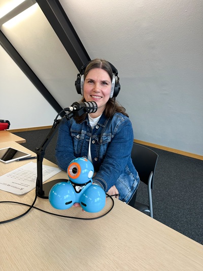 Foto: Ellen Keller-Bitzer und Dash, der sprechende Kugelroboter