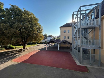 Im Zuge der Sanierung wird der gesamte Schulhof eingefriedet und mit abschließbaren Toren versehen. Die Bauarbeiten sollen noch in den Sommerferien 2026 beginnen. Die Fertigstellung ist für Ende 2026 beziehungsweise Anfang 2027 vorgesehen.