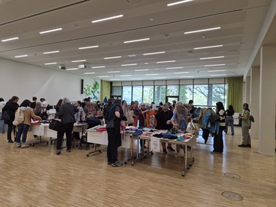 Schon vor 11 Uhr standen die ersten Besucherinnen und Besucher vor dem Eingang Schlange, und auch im weiteren Verlauf des Tages herrschte großer Andrang beim Tauschen und Stöbern. Zahlreiche gut erhaltene Kleidungsstücke wurden abgegeben und fanden schnell neue Besitzerinnen und Besitzer. Auch ohne mitgebrachte Kleidung nutzten viele die Gelegenheit, sich umzusehen und neue Lieblingsstücke zu entdecken. Im Laufe des Tages wurde fleißig getauscht, anprobiert und entdeckt. Unterstützt wurde der AWB von Auszubildenden der AOK, die beim Einsortieren der Kleidungsstücke mithalfen und so zu einem reibungslosen Ablauf beitrugen.