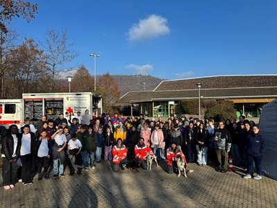 Eine erste Gruppe von Schüler*innen ließ sich von der DRK-Bergwacht Göppingen im Foyer der Schule abseilen. Manche mit sichtlicher Begeisterung, andere ausgesprochen vorsichtig. „Cool!“ das einhellige Urteil danach. „Ich könnte mir vorstellen, mich später bei der Bergwacht zu engagieren“, stellte ein kleines Mädchen begeistert fest, nachdem es wieder sicheren Boden unter den Füßen hatte.