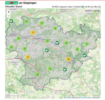 Standorte können über die Homepage des DRK-Kreisverbandes (www.drk-goeppingen.de) oder die Ersthelfer-App (www.ersthelfer-gp.de) eingesehen werden. Auf einer Karte des Landkreises werden dort alle Standorte ersichtlich sein.