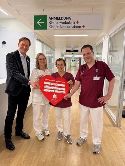 Die Spende wurde von Brigitte Gügel sowie Chefarzt Dr. Fabian Kaßberger und Oberärztin Birgit Mattulat von der Klinik für Kinder- und Jugendmedizin entgegengenommen.