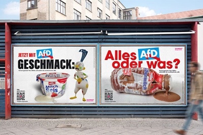 Wir lassen uns nicht entmutigen. Im Gegenteil, wir setzen sogar noch eins drauf um zu zeigen: Wenn Theo Müller sich nicht von der AfD distanziert, wird der Protest immer lauter. Bislang schweigt der Milch-Milliardär. Eine ramponierte Flasche Müllermilch mit der Aufschrift „Jetzt mit AfD-Geschmack“ – mit diesem Plakatmotiv machen wir Müllers AfD-Nähe zum Thema – deutschlandweit.